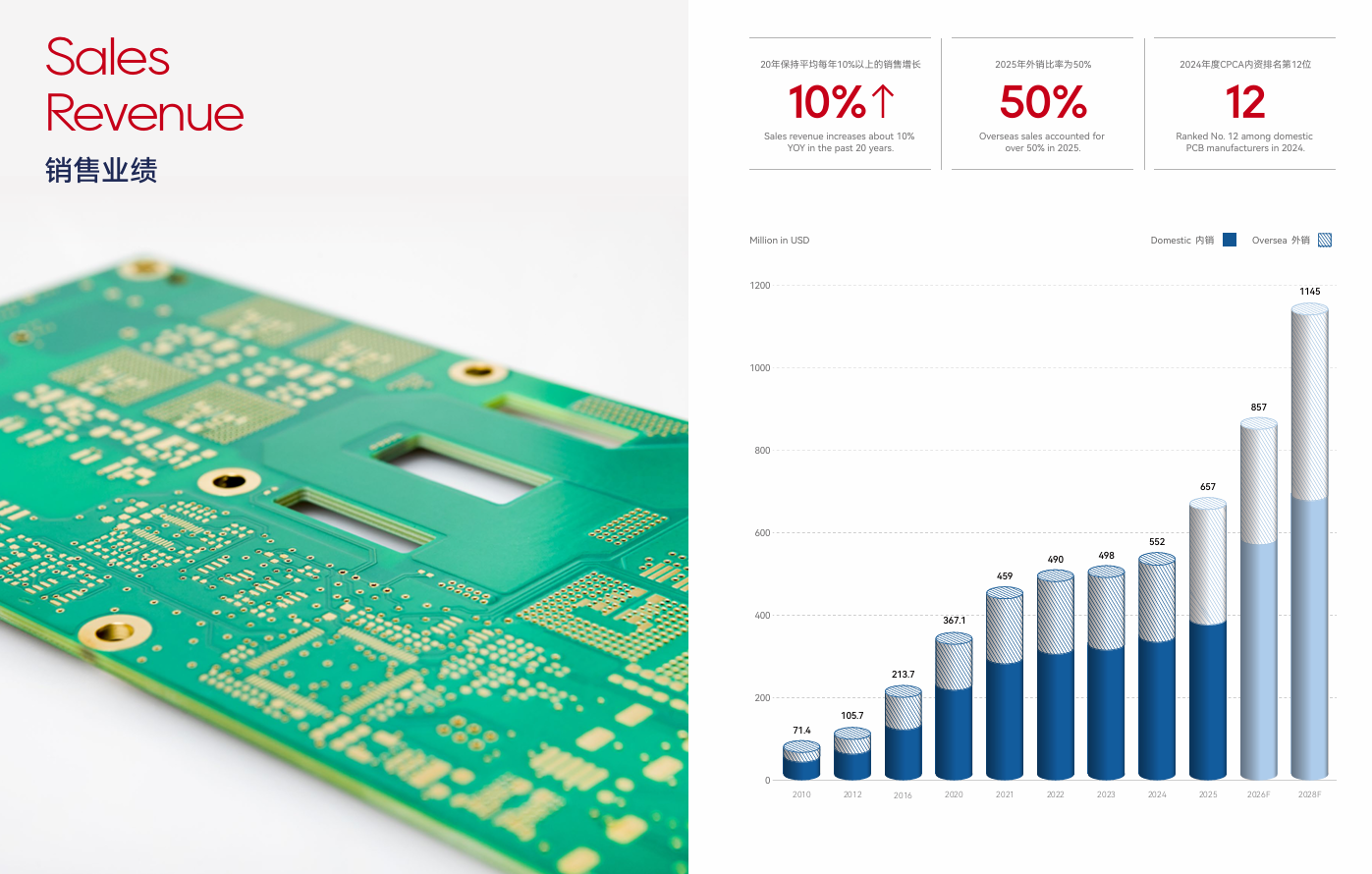 深联电路始终以客户为中心,销售网络拓展到亚洲、欧洲、美洲及澳洲等多个国家和地区,销售业绩保持了连续20年10%以上的增长,至2025年销售额达到46.8亿人民币,预测2026年的销售业绩可达60亿人民币。