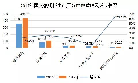 鹰潭江南铜业有限公司作为国内最大规模的电镀铜材生产基地,专业生产高品质微晶磷铜球、PCB阳极磷铜球、磷铜角、微晶磷铜板、纯铜球、纯铜角、氧化铜粉及仿金板等系列产品。2017年营收达28.91亿元,同比增长79.90%;TOP5厂商中,除承安铜业外,其余营收均有所增加。