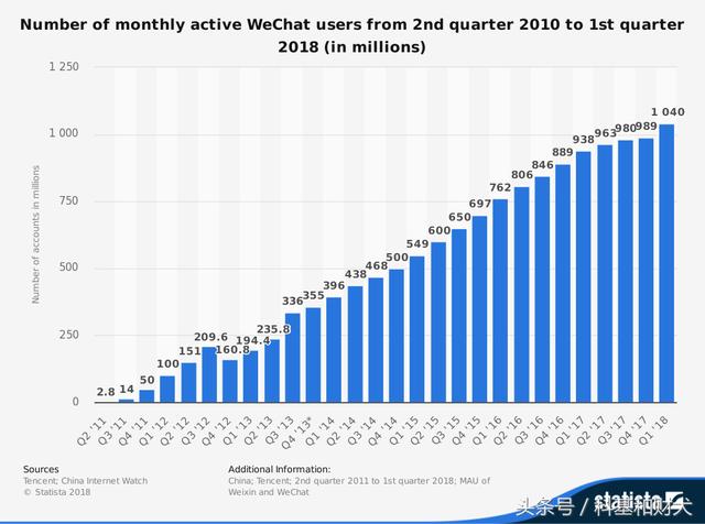 从当前的用户数量来看,微信以10亿月活成为全球应用第一梯队。