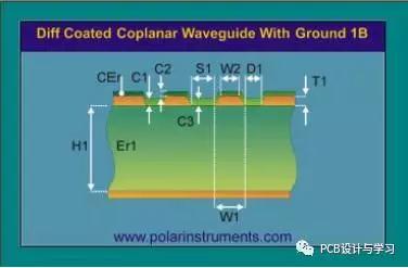 H1:介质厚度Er1:介电常数W1:阻抗线底部宽度W2:阻抗线顶部宽度D1:阻抗线到两边铜皮的距离T1:成品铜厚C1:基材的绿油厚度C2:铜皮或走线上的绿油厚度C3:基材上面的绿油厚度CEr:绿油的介电常数