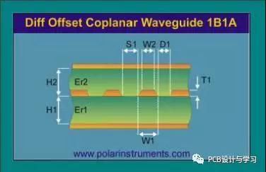 H1:介质厚度Er1:H1 对应介质层介电常数H2:介质厚度Er2:H2 对应介质层介电常数W1: 阻抗线底部宽度W2: 阻抗线顶部宽度D1:阻抗线到周围铜皮的距离T1:线路铜厚