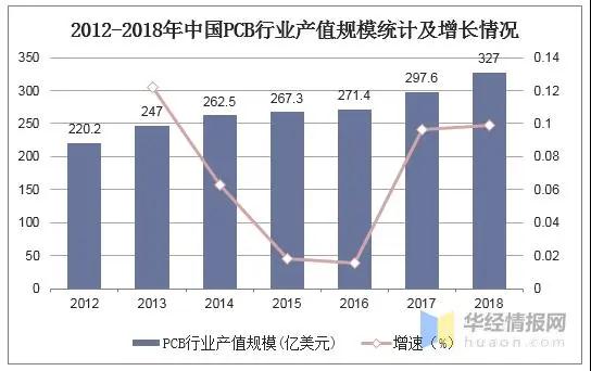 2012年-2018年,中国大陆PCB行业产值从220.2亿美元增至327亿美元,呈现出稳步增长的趋势。