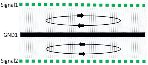 此种结构,由于信号层与回流参考平面相邻,S1和S2紧邻地平面,有最佳的磁通抵消效果;