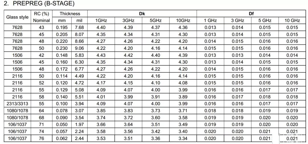 其中,RC%指树脂含量,一般树脂含量为45%~65%。一般情况下,含量高,介电常数低,击穿电压高,但尺寸稳定性差,挥发物含量高。
