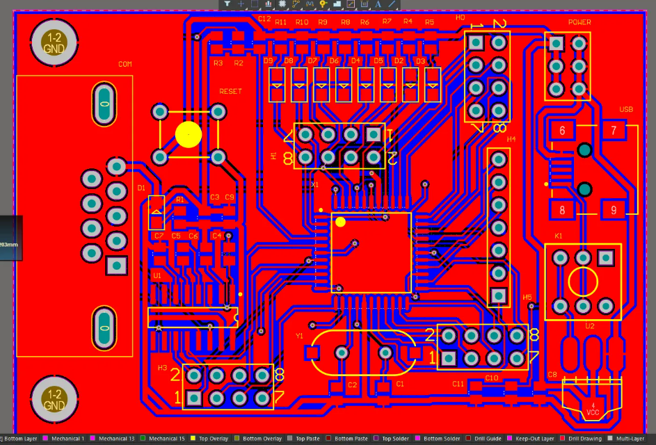 (12)布线密度优先原则:从单板上连接关系最复杂的器件着手布线。从单板上连线最密集的区域开始布线。