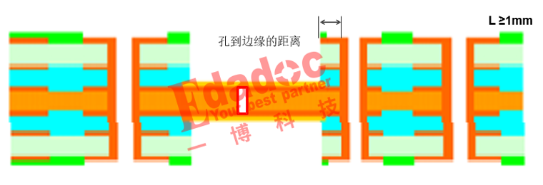 导通孔到刚挠结合边缘的距离设计至少为1mm,因高可靠性刚挠板的覆盖膜采用局部贴合,也延伸进电路板区域1mm,因此要避开导通孔,防止生产异常。