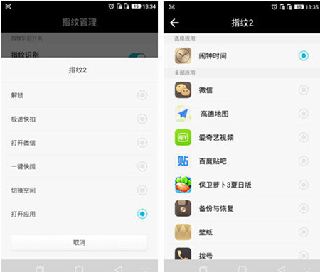 另外,除了这些指纹识别功能外,锋尚MAX还有一项重要的功能,就是可以直接将任一手指的指纹设置为“打开微信”,然后通过背部的指纹识别进入微信界面。