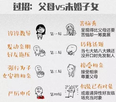当然,随着父母的逼婚招数步步紧逼,子女的应对策略也是层层升级……