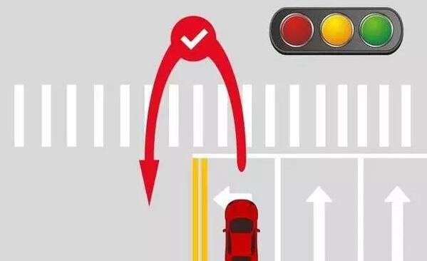 在只有“饼状” 的红绿灯面前,如果红绿灯没有箭头指示的情况下,可以提前进行掉头。